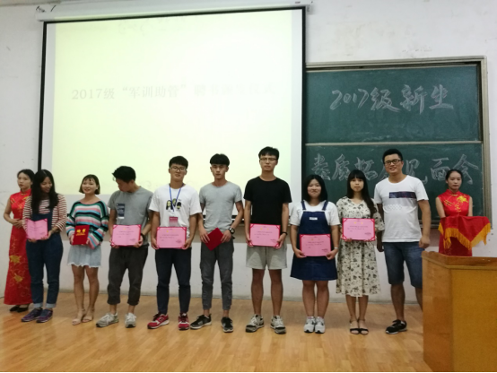 会议共有5项议程。首先由张恒道老师向17级“军训助管”颁发聘书,对他们的付出表示肯定。第二项议程由员工会主席李泽鹏介绍团学的基本情况。李泽鹏学长通过自己从干事到主席的感受,向17新同学展现了一个和谐友爱的团学大家庭,并期待新鲜血液的加入。第三项议程是各部门部长顺序上台,通过精美的PPT和生动的演讲清晰的展现了每个部门的主要工作与活动。