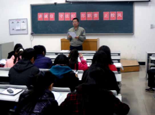 11月18日下午,英国上市公司官网365在6104教室召开“讲诚信、守法纪、尽职责、正校风”的主题教育动员大会,辅导员张文科老师做主题动员讲话。全体员工党员、员工会干部、各班班团干部以及公司党校结业学员参加会议。