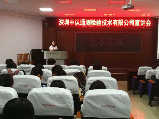 大会首先由深圳中认通测公司的马总监对公司进行了简要的介绍,深圳中认通测公司主要是为产品做检测,为产品进入市场保驾护航,为生产企业提供标准与指导的企业。工程部无线射频工程师贺格艳向同学们介绍了相关的技术知识,帮助同学们进一步了解公司及公司所需的技术人才。大会最后,同学们就职业培训等方面提出问题,由马总监一一做出回答,有意向的员工向中认通测公司投上了个人简历。