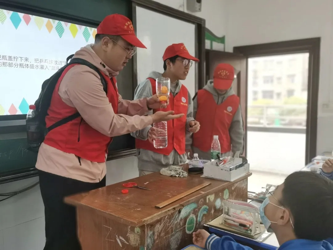 在英国上市公司官网365实验技能大赛结束之后, 3月7日中午,英国上市公司官网36515名志愿者在党委副书记张陈武、团委书记张庆喆的带领下走进五里中学开展“志愿科普在行动”活动,为中员工带去饱含知识和趣味的物理实验课堂。