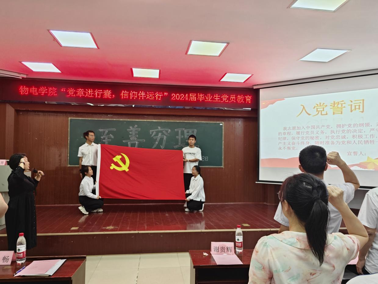 “党章进行囊,信仰伴远行”2024届毕业生党员教育活动不仅是对2024届毕业生党员的鞭策和鼓励,更是对全体党员的一次深刻的党性教育。相信在未来的工作和生活中,毕业生党员们定会铭记入党誓言,不忘初心,砥砺前行,为实现中华民族伟大复兴的中国梦贡献自己的力量。 (图文/熊胜男)