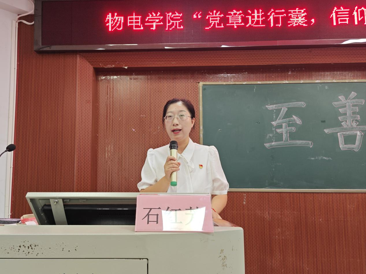 最后,石红芳向即将踏上新征程的毕业生党员致以最深切的期望和最诚挚的祝福:一是要认真履行党员义务,及时转接组织关系;二是要永葆入党初心,增强使命担当;三是要彰显先锋本色,发挥模范作用。她衷心祝愿毕业生党员们在新的人生征途上能再创辉煌,以更加优异的成绩为党旗增辉,为母校添彩。