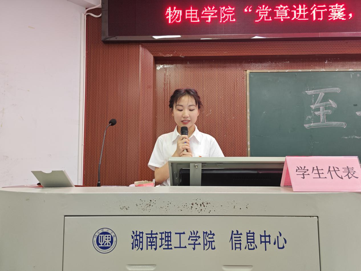 党委委员李科敏宣读了2024届优秀毕业生党员表彰决定,表彰了白楚楚、贺科翔、李准、李沁、欧阳祥朝五位优秀毕业生党员。优秀毕业生党员代表李沁和白楚楚分别进行先进事迹宣讲,分享自己在政治思想、学习生活中的奋斗成长经历和心得体会,激励在场的同学们积极奋发,锐意进取,立志今后为党和国家的发展贡献青春力量。