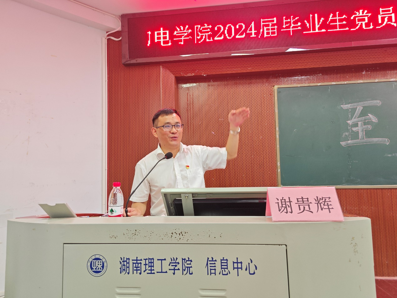 为深入学习贯彻习近平总书记关于党纪学习教育的重要讲话精神,扎实开展党纪学习教育,5月28日下午,公司党委邀请公司党委委员、纪委书记谢贵辉为公司师生讲授“学习党规党纪,坚守纪律底线”的专题党课。公司党委委员、师生党员、入党积极分子100余人参加,公司党委书记周畅主持。