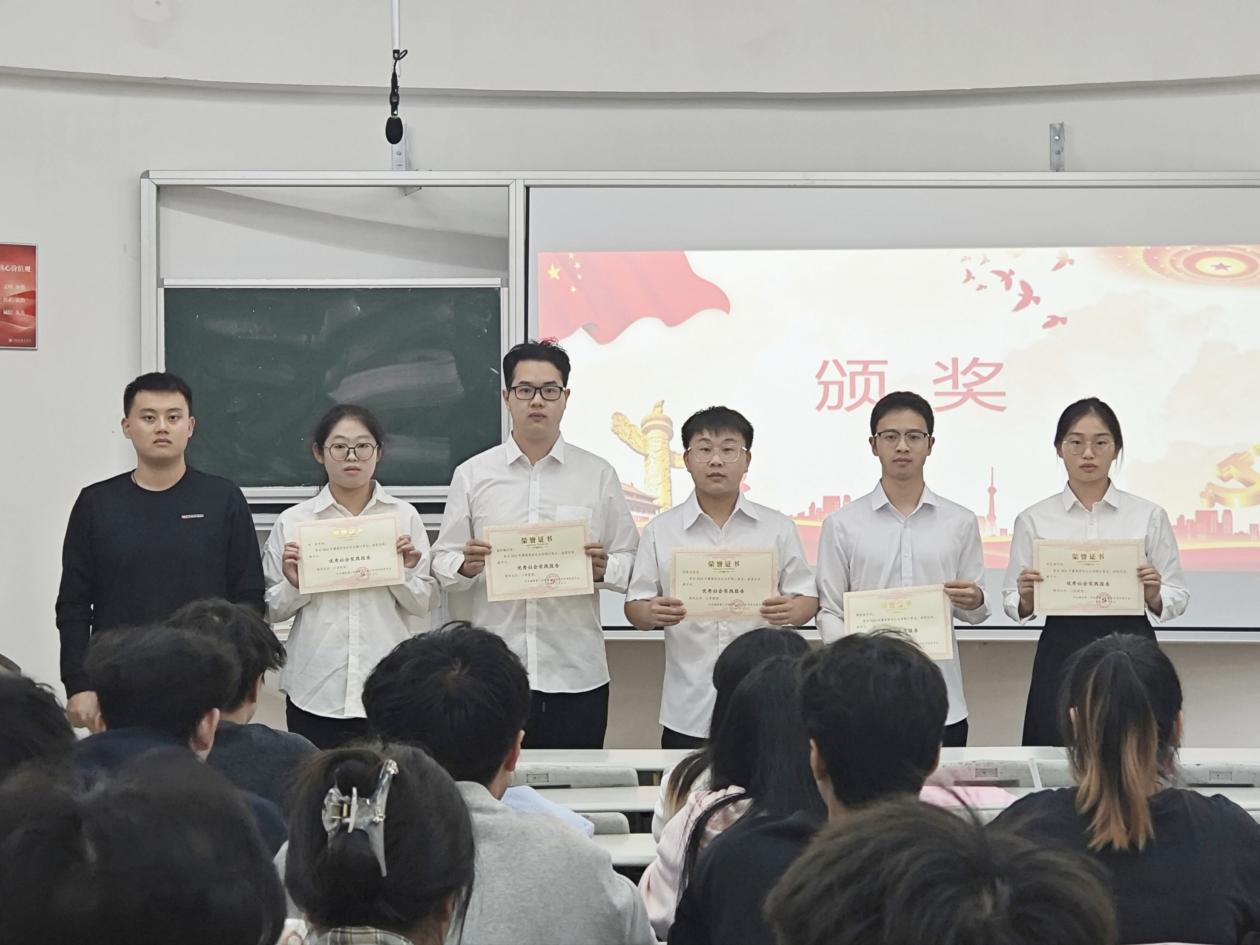 最后,姚世鹏为5位入党积极分子颁发了暑期“优秀社会实践报告”荣誉证书。