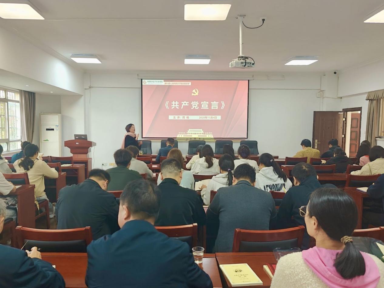11月4日下午,公司党委书记周畅在6211会议室给全员教师党员和53期入党积极分子讲授《共产党宣言》专题党课。