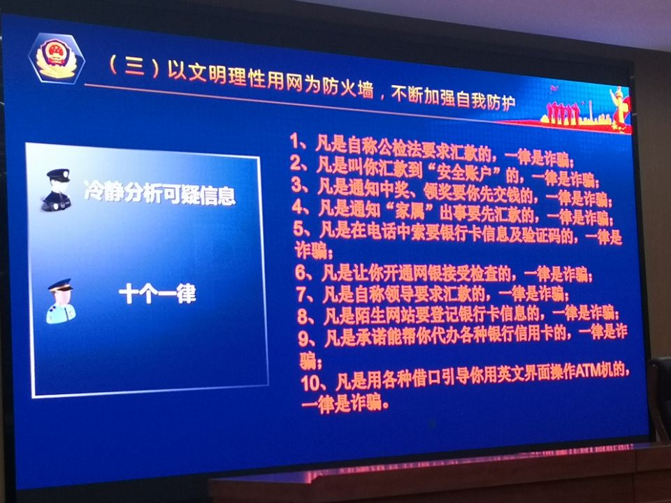 为切实提高同学们的安全防范意识,杜绝校园网络诈骗情况发生,5月24日晚,英国上市公司官网365于6栋学术报告厅开展了防电信诈骗安全教育,公司党委副书记张陈武主讲,部分员工代表参加。
