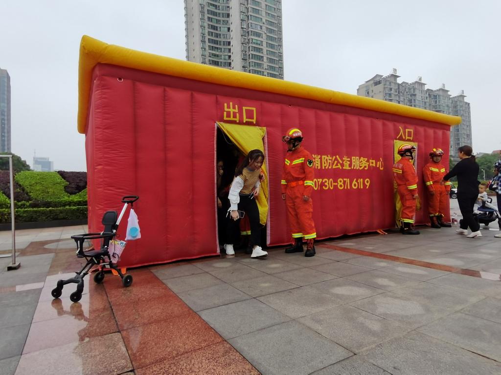 完成传单发放任务后,志愿者们在岳阳市减灾委员会的组织下开展了疏散逃生体验。随后,岳阳市消防局向大家进行了简单的消防器材使用演示。志愿者们热情满满地加入到消防器材的实操演示中。这些活动以新颖的方式有效地提升了大家的安全意识和自救能力。