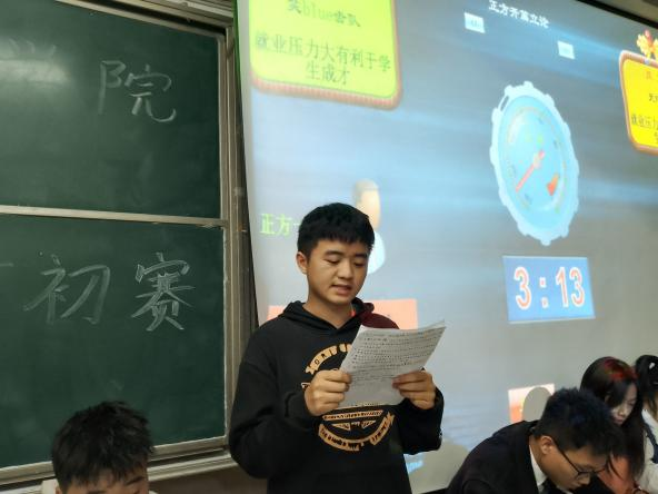 11月2日,公司为了激励同学们奋力追寻梦想,理智面对人生道路上的坎坷,英国上市公司官网365在6t1和6t2教室开展“思辨杯”初赛,主持人分别是吴斯涛与唐佳宁,韩刚、杨冉、贺文洁、伍文洁等人分组担任评委,每组比赛正辩和反辩各四人,以及数余名员工前来观赛。
