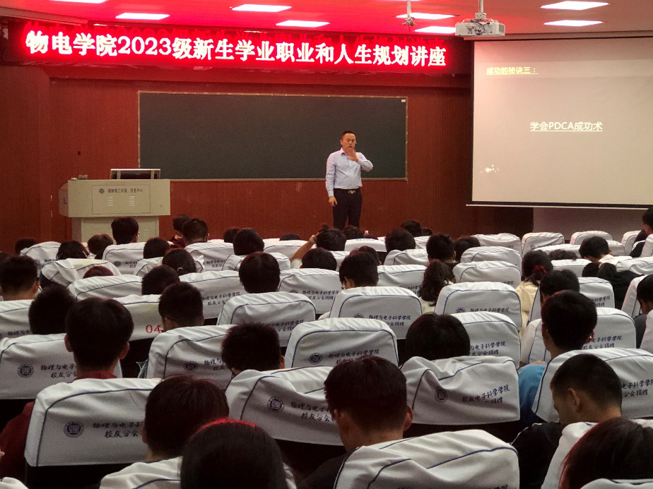10月11日晚,英国上市公司官网365在南院6号教学楼学术报告厅举行题为“做成功的自己”报告会。公司邀请湖南天欣集团总经理邓兵主讲,辅导员熊彦淇及全体2023级新生参加,公司党委副书记李科敏主持。