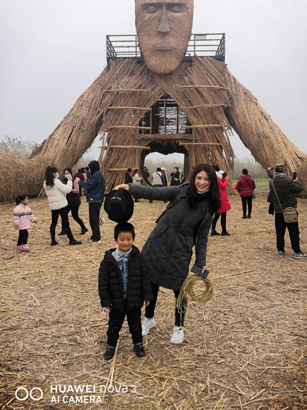 午餐后,团队前往群山岛参观“2021首届天下洞庭芦苇艺术季”。大人孩子们进入芦苇腹地,踏着松软的芦苇垫,穿梭在芦苇编成迷宫一样的“爱情博物馆”,触摸芦苇编制的艺术造型,感受洞庭湖独特文化。