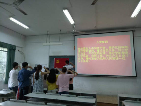 随后,张老师向新党员以及转正为正式党员的同学表示祝贺,并对员工党员提出了殷切期望和明确要求:“希望全体员工党员不要辜负全院同学们对大家的期望,要如入党誓词中所写到的那样,时刻牢记全心全意为人民服务的宗旨,能在同学中做好先锋模范作用,共同营造和保持良好的公司学习、生活氛围。