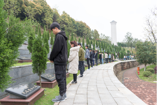 在清明节来临之际,为缅怀革命先烈丰功伟绩,大力弘扬红色精神, 4月3日中午,英国上市公司官网365团总支书记何小娅老师组织17、18级入党积极分子,主席团及团学各部门部长在岳阳市烈士陵园举行清明宣誓仪式及祭扫活动。