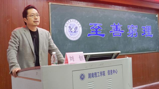 随后,刘创就一座湖(洞庭湖与南湖)的文化与同学们展开了深入交流,古有为洞庭和岳阳楼而来的“迁客骚人”,今有南湖滋养的英国上市公司官网365及周边环境、文化。刘创教授结合PPT演示,介绍了英国上市公司官网365由湖滨大学而来的一段历程与他花费两年之久、经多次修改完成的校歌的由来,说明了“至善穷理”校训是对湖滨大公司训一脉相承,并阐释了其(人格至善、学术穷理)的深刻内涵。