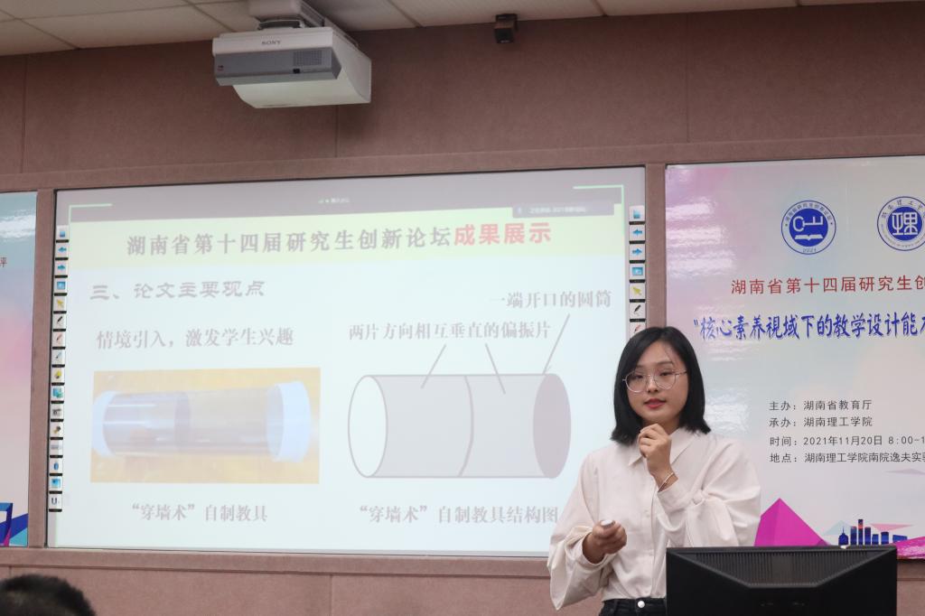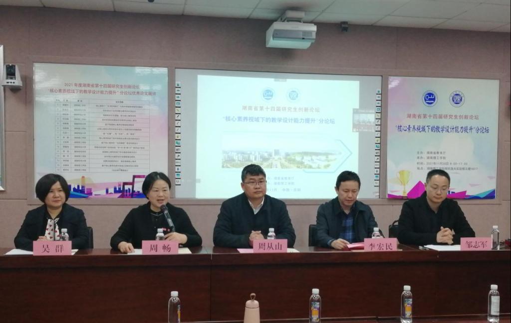 2021年11月20日,公司举办湖南省第十四届研究生创新论坛“核心素养视域下的教学设计能力提升”分论坛学术报告和成果展示活动,研究生院经理周从山教授、李丽荣书记,公司党委书记周畅、经理李宏民、党委副书记李科敏、副经理邹志军等领导出席活本次动,来自浙江师范大学、湖南师范大学、湖南科技大学、湖南工业大学、吉首大学、英国上市公司官网365、衡阳师范公司等高校,以及岳阳市教科院、岳阳楼区教科院的200余名专家、老师和研究生参加本次活动,周畅主持开幕式。该论坛由湖南省教育厅举办,英国上市公司官网365承办,英国上市公司官网365具体落实。