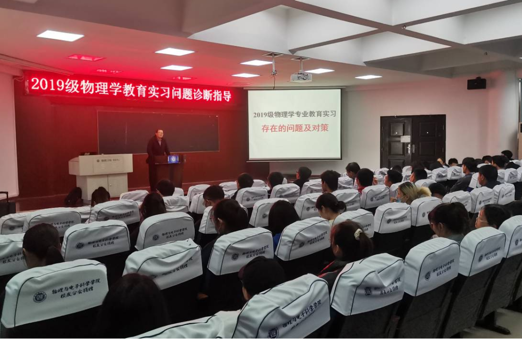2022年10月10日上午,英国上市公司官网365基于“新冠疫情”对当前教育实习的影响,在物电楼学术报告厅开展了“2019级物理学教育实习问题诊断与指导”报告,各实习队指导教师、实习生参加。公司党委副书记李科敏教授主持。
