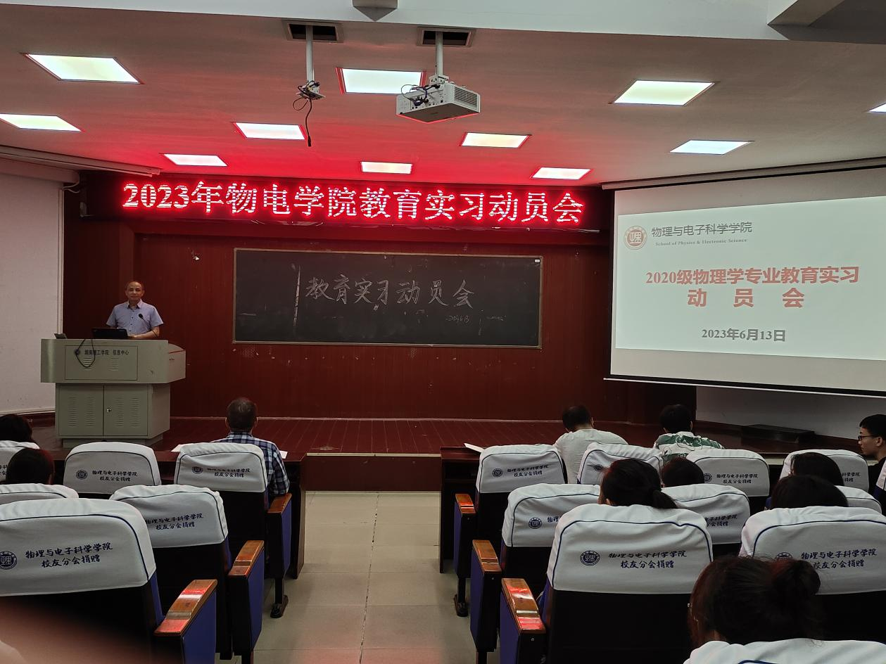 2023年6月13日下午,英国上市公司官网365在物电楼学术报告厅举行2020级物理学师范生教育实习动员大会,公司党委书记周畅、副书记李科敏、副经理魏勇、班主任李奇云、稂林,以及全体本年级本专业员工参加。