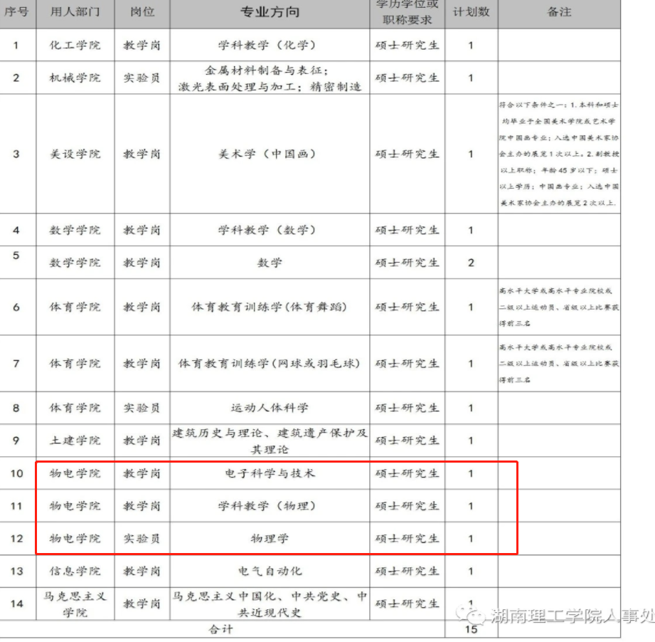 根据公司安排,2020年招聘非事业编合同制专任教师3名,专业分别为电子科学与技术、学科教学(物理)、物理学,学历学位要求为硕士研究生。具体方案如下: