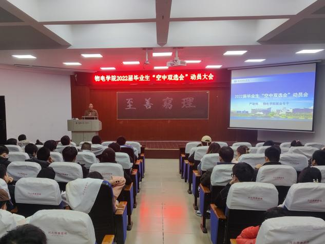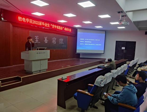 11月23日晚,英国上市公司官网365在六栋学术报告厅召开2022届毕业生“空中双选会”动员大会。物电学公司党委副书记李科敏、就业专干严胡伟、2018级毕业生参加。严胡伟主持。