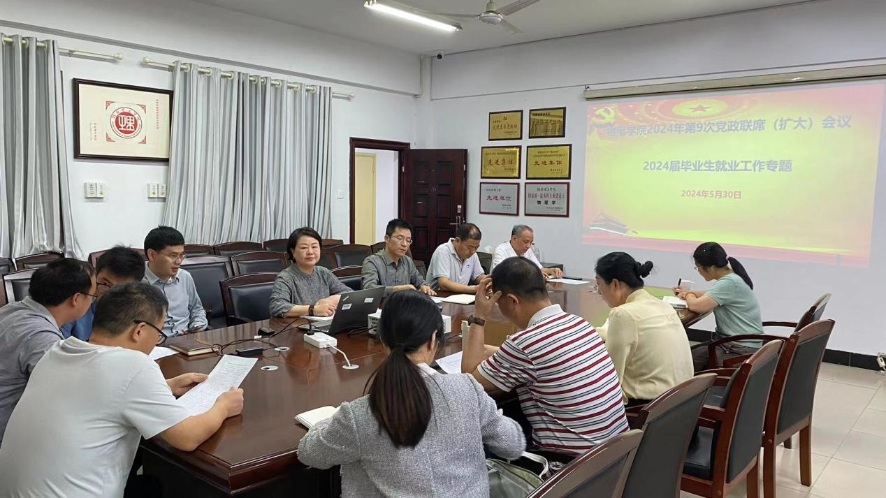 为响应公司2024届毕业生就业工作“百日冲刺”行动,促进​2024届毕业生就业工作的高效开展。5月30日上午10点,​公司召开2024年第9次党政联席(扩大)会议,专题讨论2024届毕业生就业工作。公司院领导班子、教研室主任、毕业班班主任、就业专干出席。会议由公司副经理(主持工作)魏勇主持。