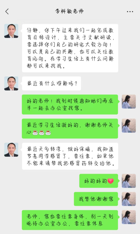有这样的导师是我们的荣幸,我们不会忘记您板书的一笔一划,我们不会忘记您在学术学业上手把手带领我们刻苦钻研,我们不会忘记您对工作对员工的热爱。科敏书记的一言一行都在教育我们如何成为一个合格的人民教师,成为一个幸福的人。您是我们学习的榜样!