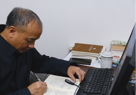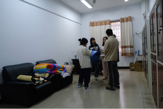 李科敏书记的办公室十分干净整洁,一张办公桌、一排书柜和一个小沙发,小沙发上还有一床被子,书记说“有时进行实验研究一晃就到凌晨了,为了不打扰师母就在这里睡,常常半个月都不回去,师母都有些抱怨,她说别人不做的事情你总是带头去,但我感觉这很有意义,感觉到很幸福。”