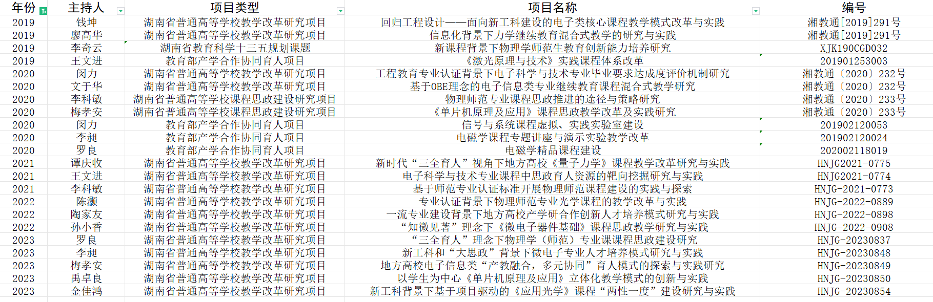 近五年省级教改项目立项情况