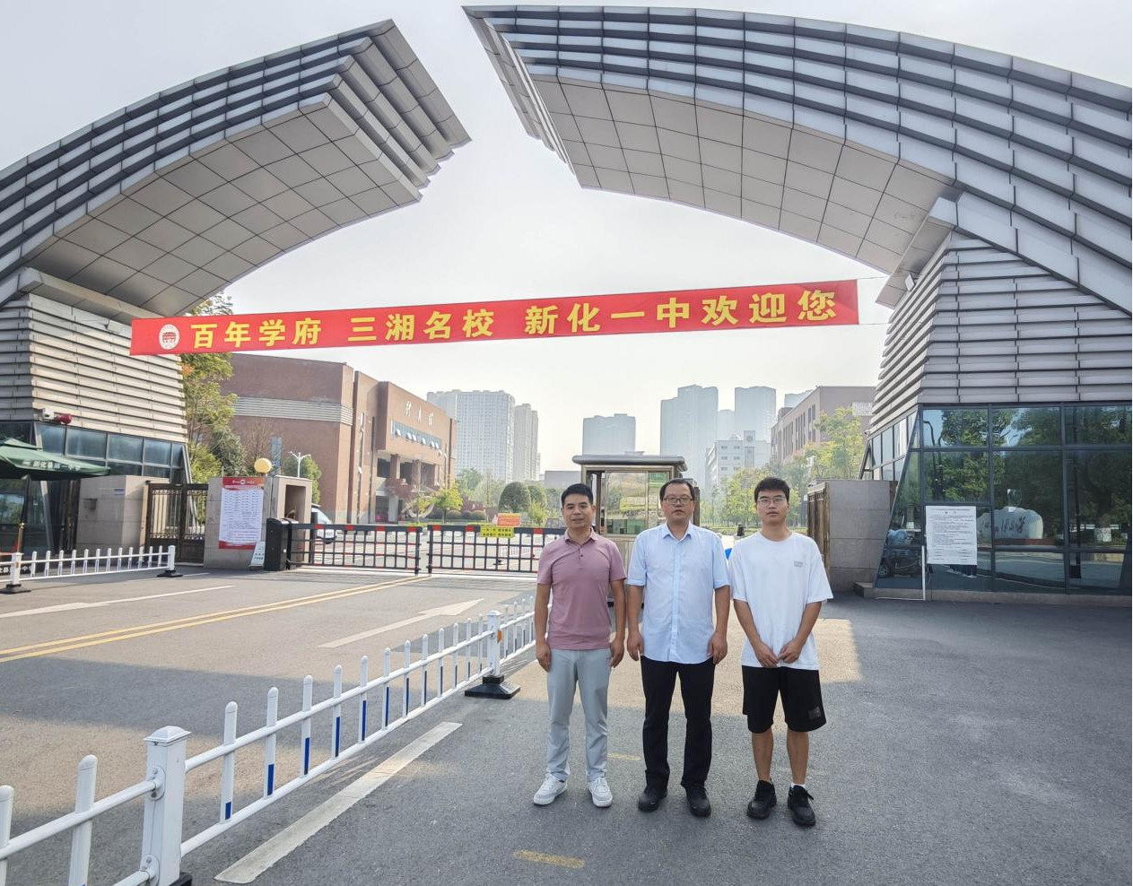 李奇云在溆浦一中与实习生贺琪(左二)及指导教师