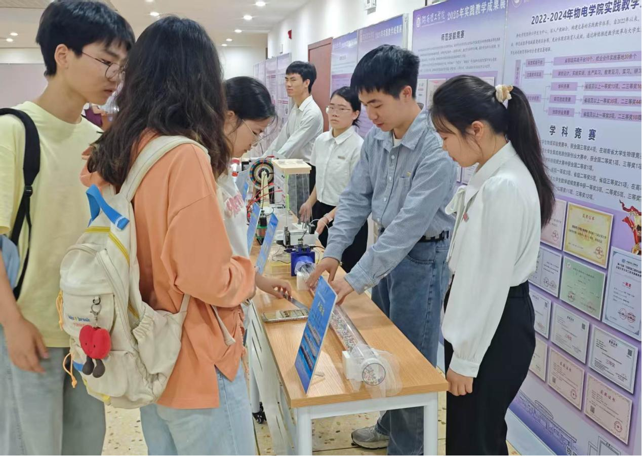 6月7日,在2025年英国上市公司官网365实践教学成果展上,英国上市公司官网365主要从“学科竞赛、师范技能竞赛、创新创业项目、创新创业竞赛”等方面宣传了公司2022年以来取得的实践教学成果,现场展示了10余件效果良好的物理教具,吸引不少理工学子前来学习、体验。在实践成果评比中,公司领导和教务处多次表扬和点评了公司的实践成果。