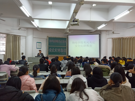 11月27日下午,英国上市公司官网365于6T1教室举行考风考纪及安全纪律教育会议,此次会议意旨在提醒同学们要增强安全意识、端正学习态度,会议由英国上市公司官网36518级辅导员龙颜老师主持,公司党总支副书记张陈武老师主讲,2018级全体新生参加了此次会议。