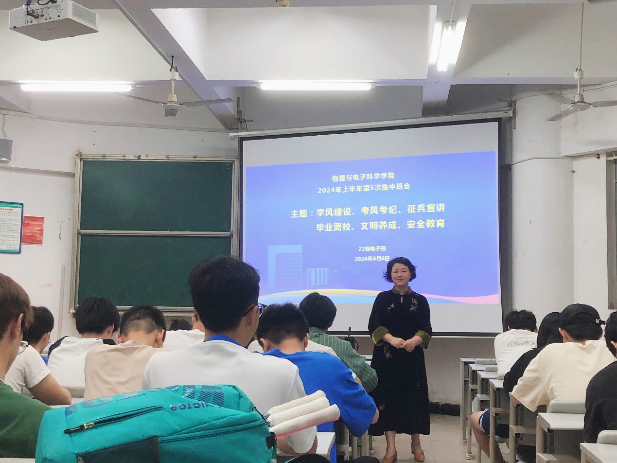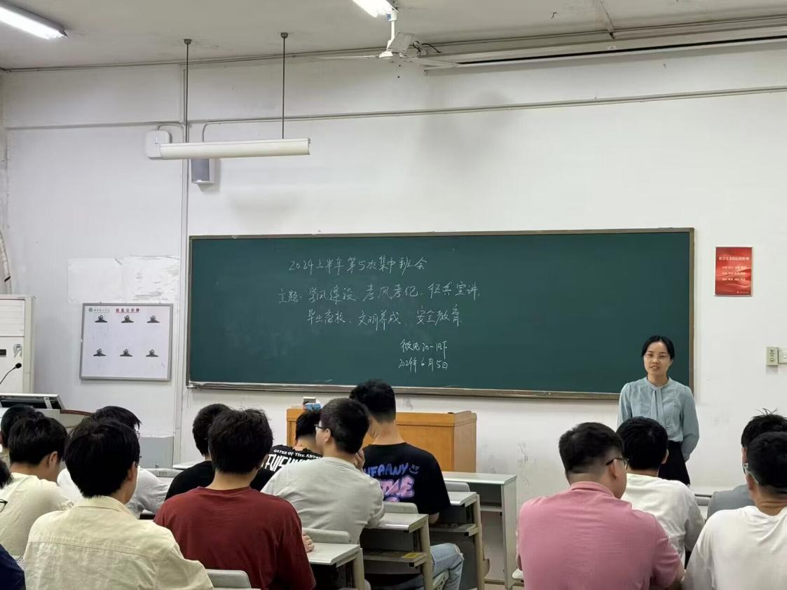 为加强员工日常管理,提高员工安全防范意识,严肃考风考纪。近日,公司召开2024年上学期第五次主题班会,班会由各班班主任主持,全体同学参加。