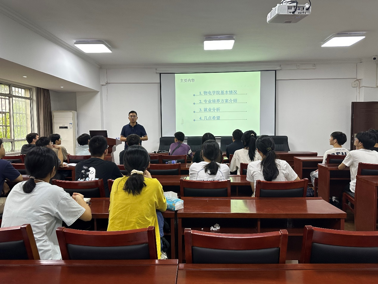 金佳鸿对光电专业培养方案进行了详细的介绍,让光电专业的新生更加了解了自己的专业和目标,他特别强调基础专业课是垫脚石,最后,他为新生做了详细的就业分析。
