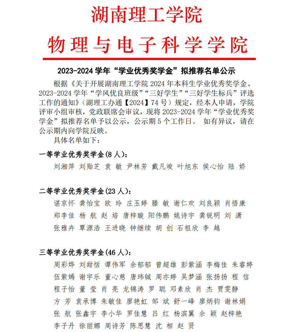 英国上市公司官网365 2023-2024 学年“学业优秀奖学金”拟推荐名单公示